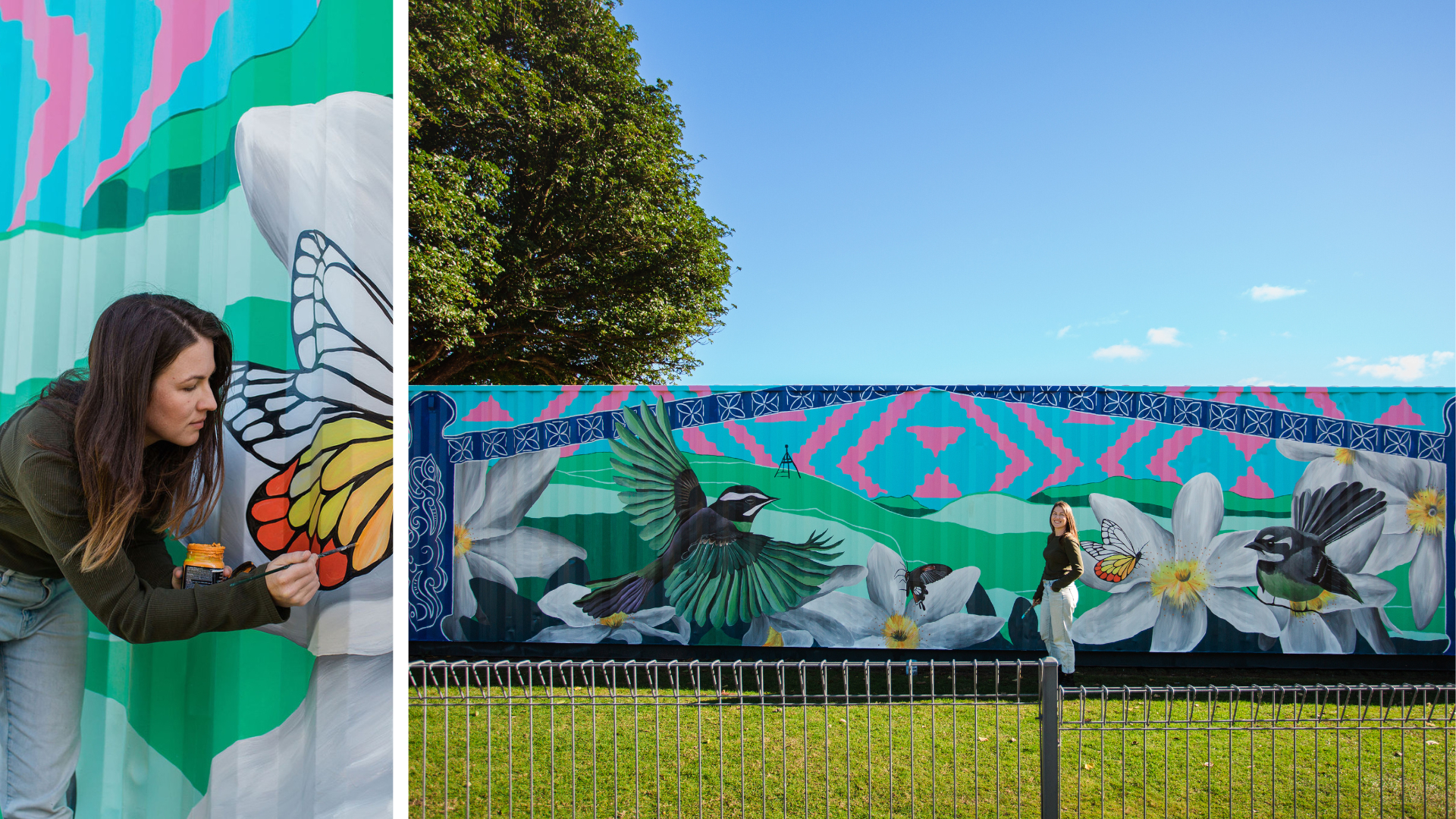 My Fine Arts tutor at Toi Ohomai – Cherie Sayer. Her support and belief in me – I don’t believe I would be where I am today without her. Various mural artists I follow and am inspired by such as Chera Creative, Alli K Design, and Hanna Daly. All female muralists who are doing amazing things with their art businesses!
