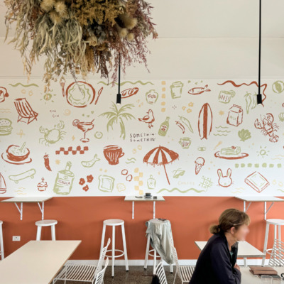 I paint murals for cafes, retail stores and small businesses. I also paint street art in public spaces that are filled with energy. Whether it’s inside or out, my murals are designed to bring a whole lot of colour and joy, plus a good dose of storytelling to your space.
