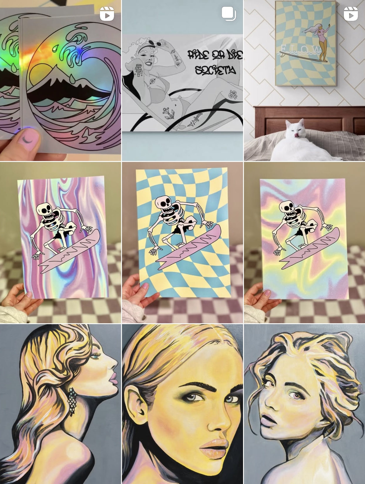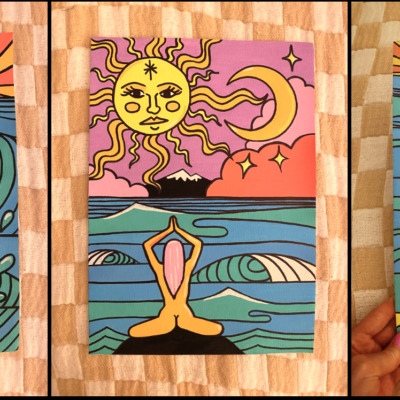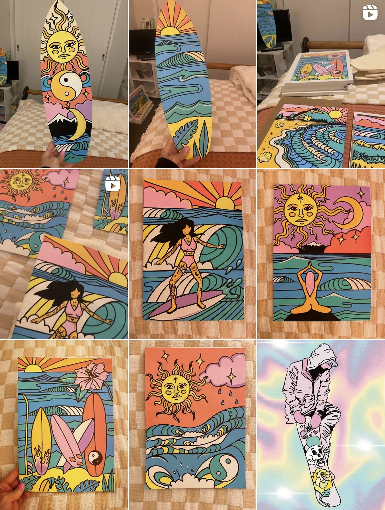 My favourite disciplines include pencil and line work, acrylic (brush and pen) painting and digital art. I have found inspiration in street art, tattoo and the surf, skate and snow culture. I have worked in Digital Print for some time, which made the transition into printing and selling my own art prints an easy one. I sell original artworks as well as prints and commission artwork (upon request), as well as attending local markets.