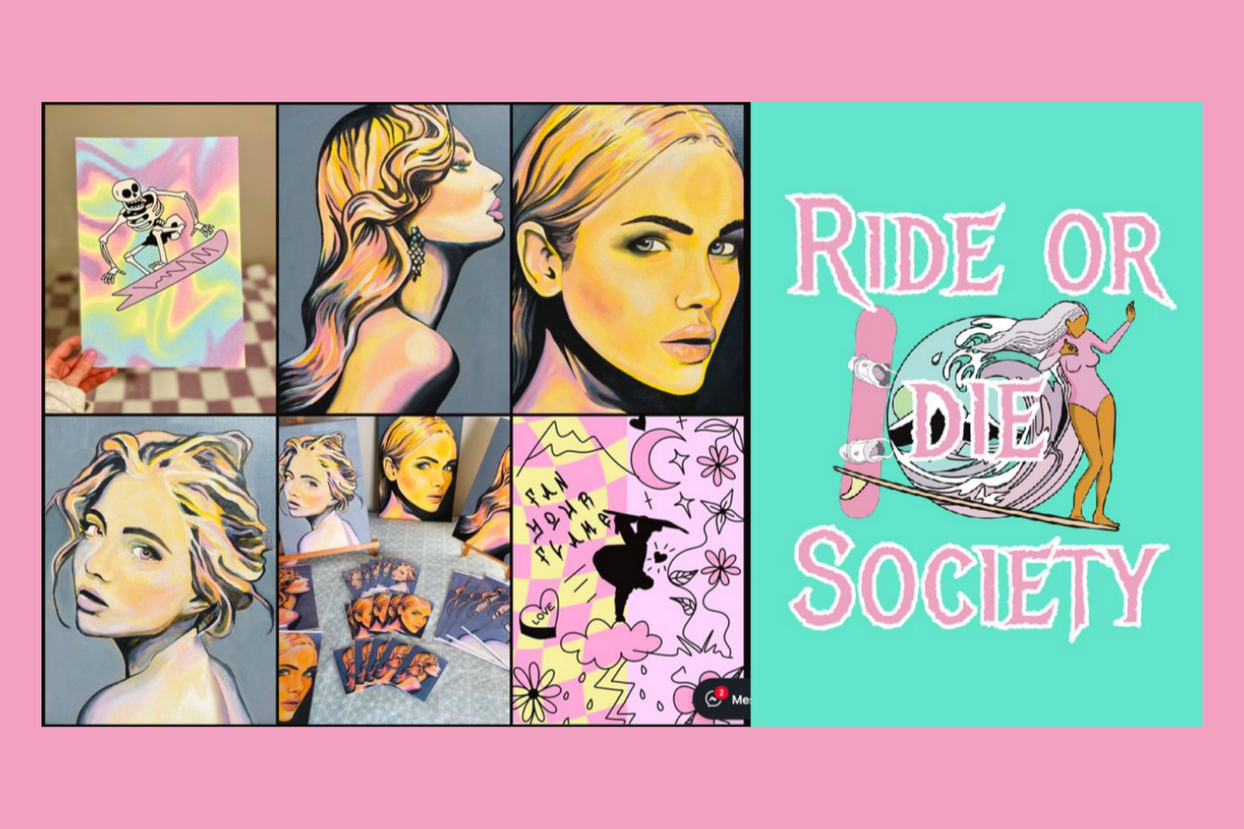 My love for snowboarding and nature found me on a journey of the outdoors in beautiful Canada, Australia and then the last six years spent in Wanaka. With the freedom and passion of my chosen lifestyle, I’ve always been inspired by rebels, daredevils and open-minded souls alike. I consider my art most often enjoyed by folks who love to soak in nature, shred the gnar (snow), charge barrels (surf), ride the concrete wave (skate) and generally remain forever young at heart. Nature is probably my greatest inspiration. I go by Ride or Die Society Artwork.
