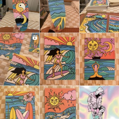 Growing up in a sign shop environment, with a paint brush in my hand from a very young age. I was lucky enough to go to a heavily arts based college where I won a Bursary award in painting and went onto study fashion design. I have sold my work at the Wanaka Arts Labour weekend show every year, as well as local markets and would love to delve into some new events and exhibitions in the BOP. I’d be very keen to become part of an arts collective, curate group exhibitions and sell my work in any shops locally. For commission work and art sales, feel free to reach out anytime.
