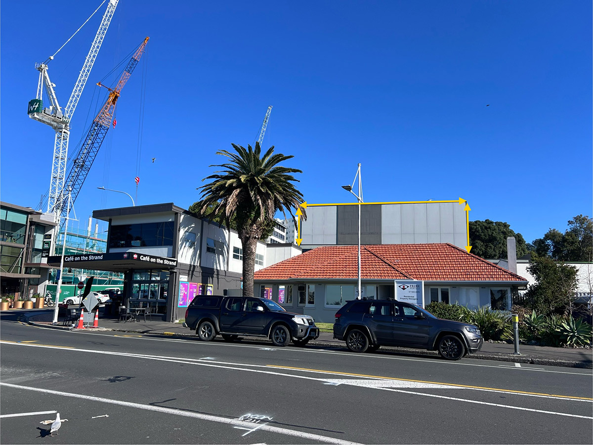 – 2 storeys, starting above a 1.5 storey building. Scaffold required – Artist to have Work Safe