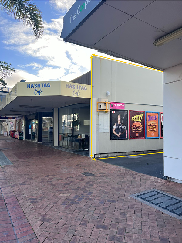 – Frequently used advertisement frames attached to the middle/ left of wall. Artist to work around/