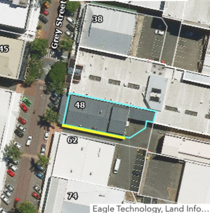 – Accessed and seen from Grey Street. Wall onto vehicle access way leading to rear of