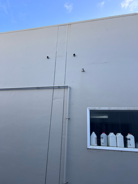 – Multiple features – Electricity meter/ multiple pipes / exterior ventilation vents/ side access door /