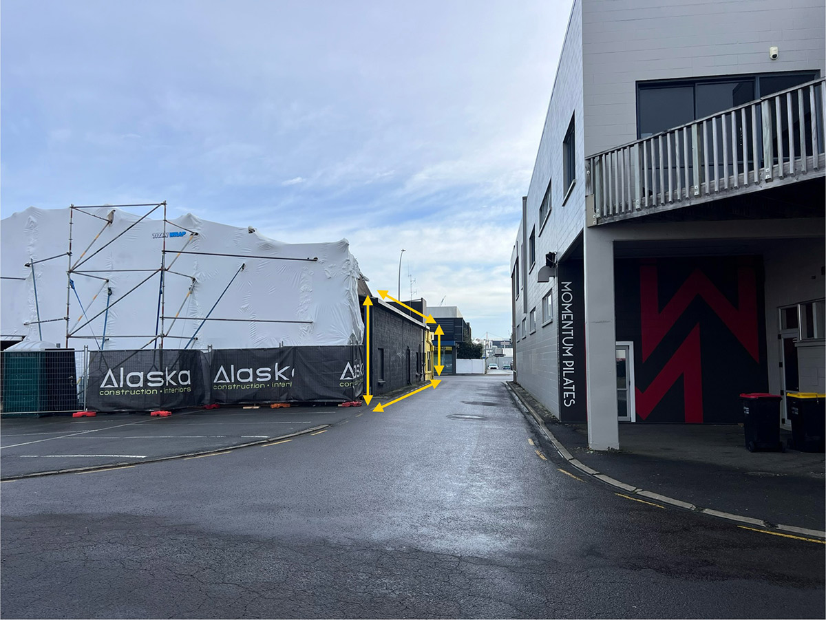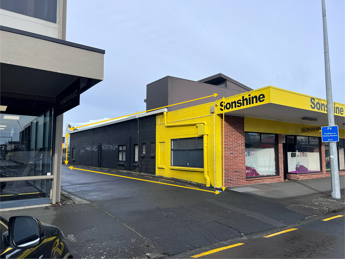 – Accessed and seen from First Avenue, via vehicle access running alongside ‘Sonshine books’.